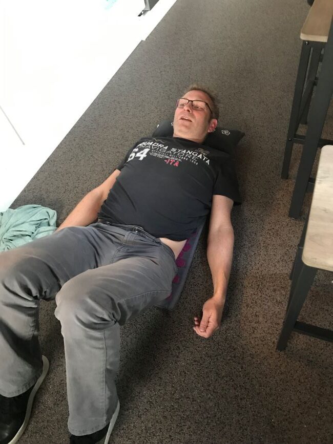 Zelf gebruik ik tegenwoordig de floweemat om meditatie- of ontspanningsoefeningen te doen. Heerlijk!! Al zijn de meningen hierover verdeeld. Hieronder zie je Erwin de mat uitproberen tijdens Pasen bij ons in de keuken. Ik geloof niet dat hij er erg enthousiast van wordt. Haha.