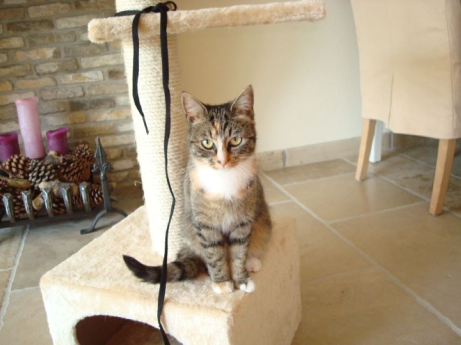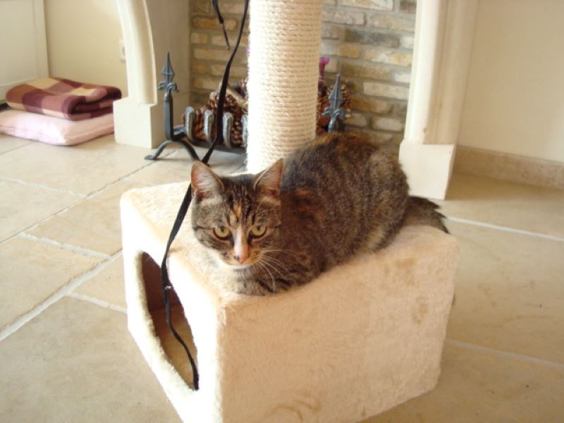 Voor Raya en Luna staan er twee krabpalen in huis, een in de keuken en een op zolder. De katten kunnen zich aan de krabpaal krabben en op deze manier verwijderen ze losse stukjes van de nagels. Zo houden ze de nagels scherp. Tijdens het krabben geven de nagels ook een geur af, zodat ze hun territorium afschermen. Je voorkomt zo ook dat ze aan je meubels krabben. Lady, hun vroegere poes gebruikte een houten tuintafeltje hiervoor.