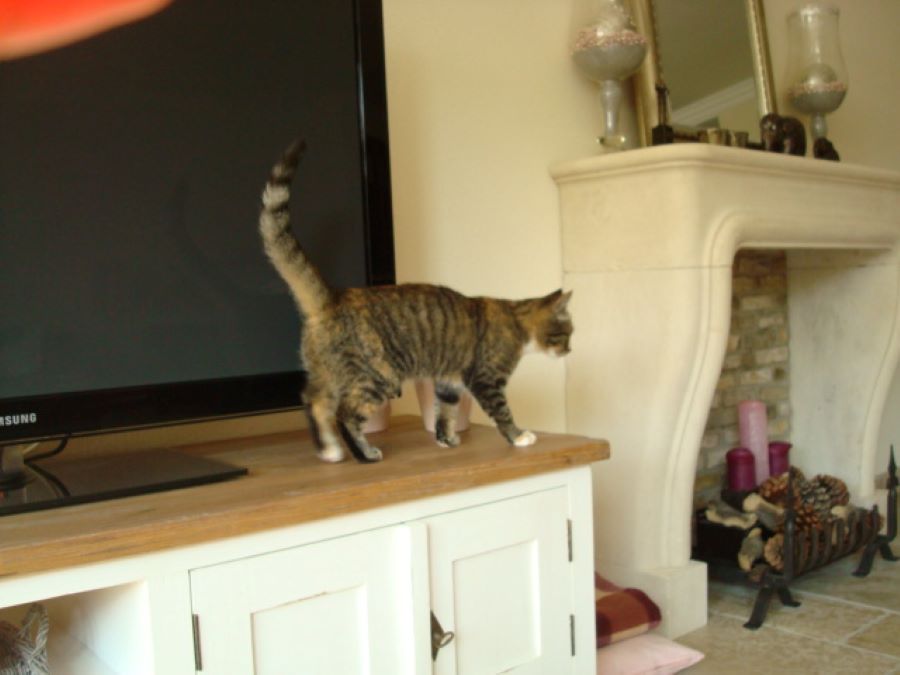 Toen Luna en Raya klein waren maakten ze meer gebruik van de krabpaal. Er werd dan een keer per jaar een nieuwe aangeschaft. Misschien hebben ze nu buiten een ander plekje hiervoor gevonden. Alleen Raya maakt zichtbaar gebruik van de krabpaal. Een krabpaal moet ook meegroeien, de katten moeten zich kunnen strekken. Er zijn diverse krabpalen te koop,waar ze ook op kunnen liggen. En wil je je kat verwennen met een zelfgemaakte krabpaal, kijk dan eens bij Freds bouwtekeningen voor leuke ideeën.