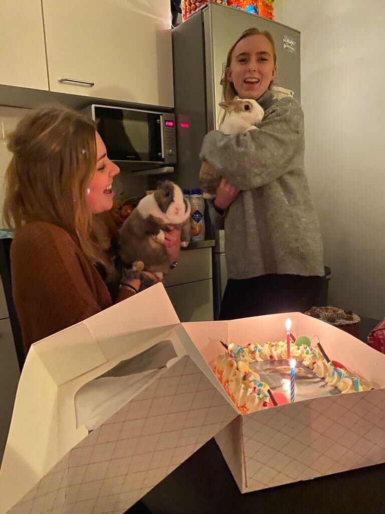 - Met hun eerste verjaardag heeft Debbie een knaagtaart voor ze gekocht. Ze lieten het zich goed smaken. Dit is natuurlijk ook een leuk idee voor dierendag.