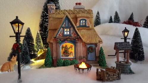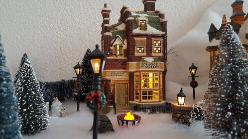 Het thema dat wij zelf hebben gekozen voor ons kerstdorp is het thema “Dickens village”. Onze investering in twee huisjes van Department56 twaalf jaar geleden was meteen onze beste investering. De beide huisjes (Scrooge & Marley Counting House en Cratchit’s Corner) zijn behoorlijk gedetailleerd en keurig afgewerkt.