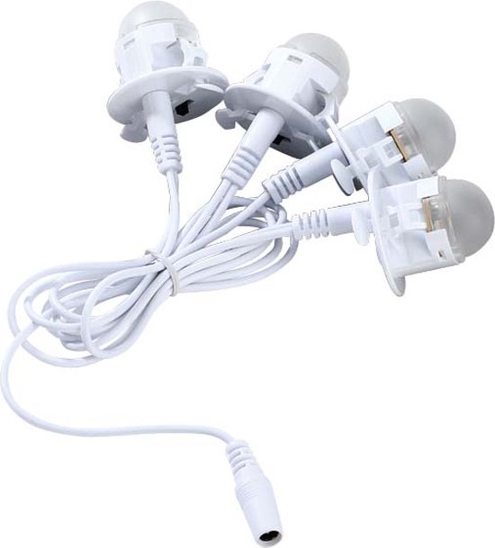 Ik maak zelf gebruik van meerdere adapters van 3 volt en adapters van 4 1/2 volt. Iedere adapter is uitgevoerd met vier snoertjes en vier stekkertjes. Uitbreiding van het kerstdorp is nu een makkie! De losse stekkertjes die niet in gebruik zijn liggen netjes weggewerkt onder het sneeuwdoek, wachtend op het volgende item wat ik ga vragen voor mijn verjaardag… 😉