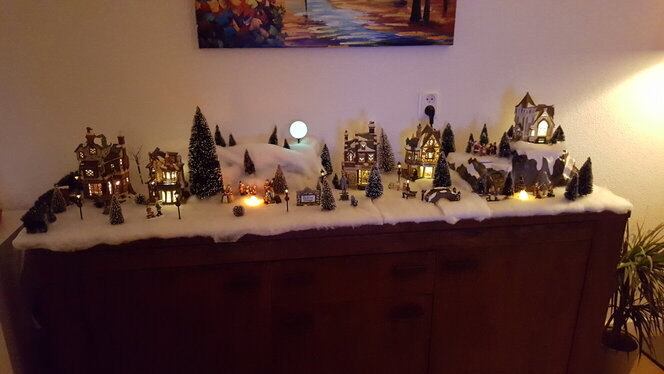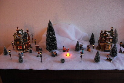Dan rest er nog één ding om te doen. De vensterbank of bovenkant van de kast moet leeg gemaakt worden om ruimte te maken voor het kerstdorp! Het kerstdorp is in de loop der jaren steeds meer uitgebreid met weggetjes, huisjes, poppetjes, boompjes etc. De bouw kan beginnen, samen met het gezin, die de nodige aanwijzingen geeft. Ieder jaar weer een grote klus, maar voor een doe-het-zelver is niets teveel. Dankzij jouw uitmuntende voorbereidingen hoef je nu niet meer te stoeien met de snoertjes!