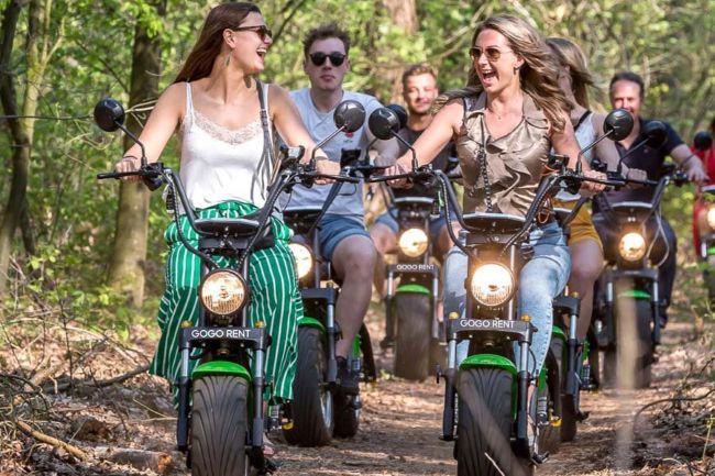Huur een e-chopper uitje voor de jarige moderne vrouw, deze is met zijn stoere uiterlijk en hoge funfactor één van de leukste voertuigen om op te cruisen. Zij kan heerlijk toeren op de e-chopper en zo de mooie stad Deventer verkennen. Jullie gaan natuurlijk met haar mee met het vriendengroepje, wel zo gezellig!