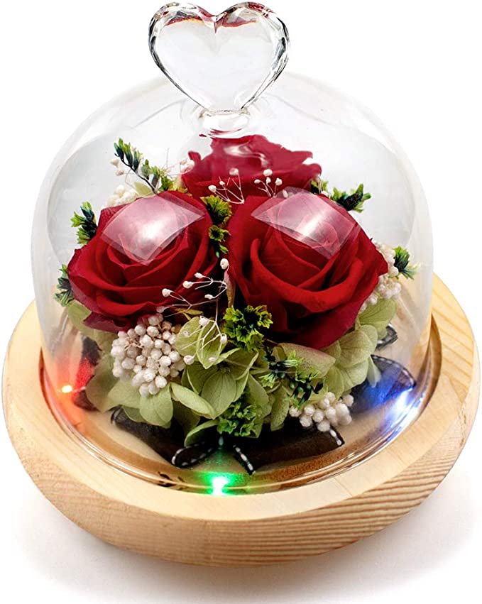 Houd er rekening mee dat de stolp in het echt kleiner is dan dat de afbeelding doet vermoeden. Kijk dus goed naar de maat. Een voordeel hiervan kan zijn dat je de bloemen dus overal neer kunt zetten omdat het geheel weinig ruimte inneemt. Een nadeel is dat je de verlichting aan de onderkant moet aanzetten. Maar voor de rest ziet het er superleuk uit. Door op de bovenstaande afbeelding te klikken vind je niet alleen dit luxe cadeau maar nog veel meer gerelateerde producten