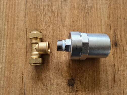 Natuurlijk ben ik verder gaan speuren bij andere leveranciers en wat blijkt, de Caleffi waterslagdemper (ons exemplaar) is ook verkrijgbaar met de eenvoudige montage!