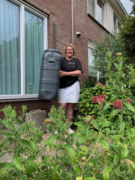 Ik kwam ook nog een bericht tegen van degroeneuitdaging.nl, waarbij je kans had om een regenton te winnen tijdens de actie van NK tegelwippen. Dus heb ik ook een mailtje naar hun gestuurd inclusief de foto’s. En twee weken later kreeg ik bericht dat ik de regenton gewonnen had. Hoe leuk!! Ik mocht er één uitzoeken van 100l, 114l of 168 liter. We hebben voor de 100 liter regenton gekozen omdat onze achtertuin niet zo groot is.