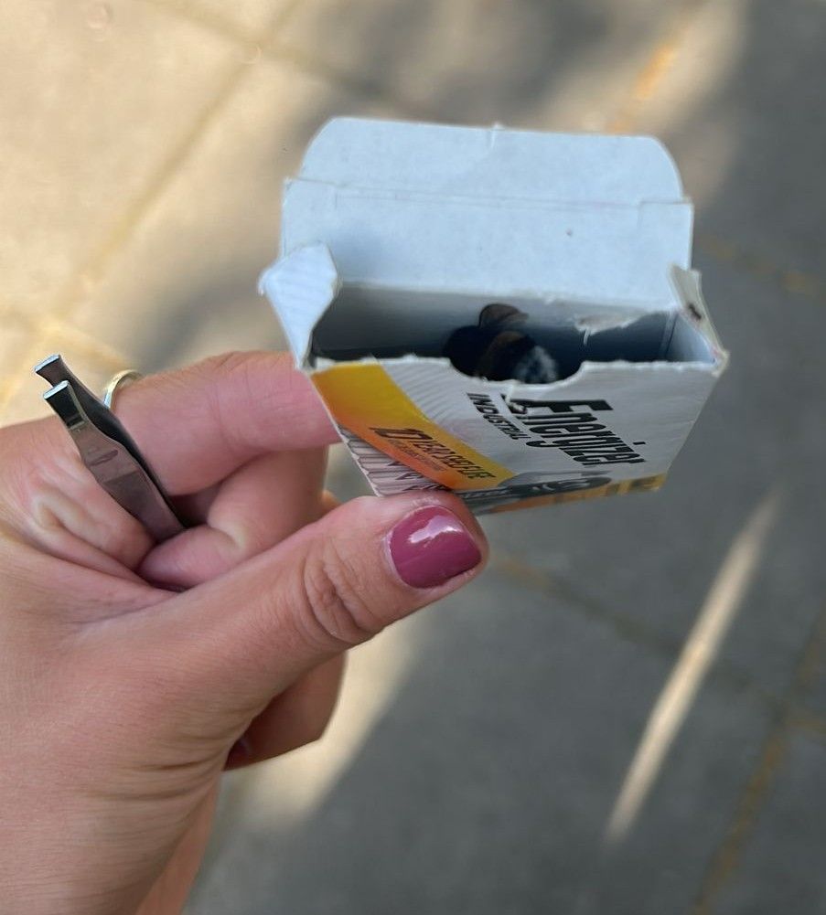 - Met pincet of handschoen doe je de hommel in een plastic zakje en deze sluit je luchtdicht af.