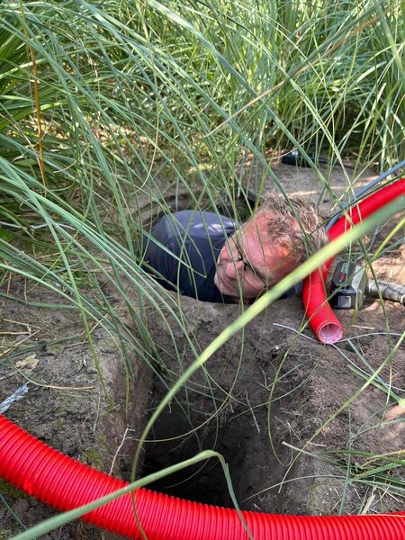 Zelf ben ik een voorstander om met de hand een sleuf te graven. Als er verborgen kabels of wat dan ook in de grond liggen, dan is de kans op beschadiging een stuk kleiner. De sleuvenfrees zal alles in zān pad om zeep helpen en het is dan ook erg belangrijk om uit te zoeken of er geen andere kabels (of wat dan ook) in de grond liggen.