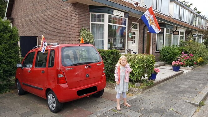 - Wil je met leuke autoversiering rondrijden? Denk dan eens aan vlaggetjes die je kunt vastklemmen aan de auto. Onze paps rijdt hier altijd mee rond tijdens het EK of WK voetbal. Superleuk! Ik vond op een website ook leuke rood-wit-blauwe wieldophoezen. De hoesjes zijn er ook in een variant voor je autospiegel. Door op de onderstaande afbeelding te klikken, dan kom je direct op de website met al deze flitsende oranje versieringen. De komende Koningsdag zal jij behoorlijk opvallen, kan ik je vertellen… 😉