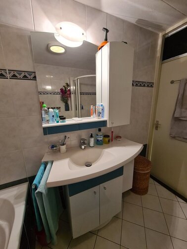 Al het sanitair in onze badkamer heeft plaats gemaakt voor een vernieuwde en verbeterde variant. Omdat het formaat van onze badkamer niet al te groot is (laten we zeggen gemiddeld), was er voor ons vrij weinig schuifruimte. Uiteindelijk zijn zowel de douche, het bad en het toilet op dezelfde locatie terug geplaatst. Een deel van de badkamer voor en na de renovatie kun je hieronder bekijken!