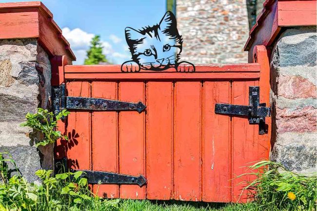 Is dit geen grappig cadeau voor de tuin- en dierenliefhebber, deze Kat Kitty die ondeugend over het tuinhek kijkt? De Kat kan bevestigd worden aan houten palen, terrasmuren of schuttingen. De vorm wordt uit 2 mm dik speciaal staal gelaserd en zwart gepoedercoat, wat ervoor zorgt dat het Katsilhouet roestvrij blijft. Superleuk toch?